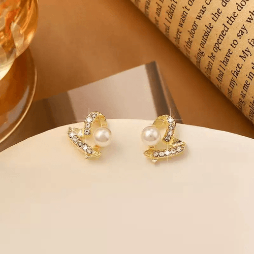 Zarcillos De Modelo Corazon Con Perla Y Diamantes Brillante Estilo Vintage